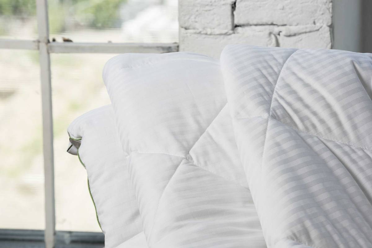 Изделия с наполнителем из бамбука легко пропускают воздух, создавая охлаждающий эффект, поэтому им нет равных в жару. Одеяла из этого материала, помещенные в сатиновый чехол белого цвета, прекрасно вписываются в любой интерьер. Они отличаются превосходными дезодорирующими свойствами, мягкие, легкие, нетребовательны в уходе, гипоаллергенные и подходят абсолютно всем.